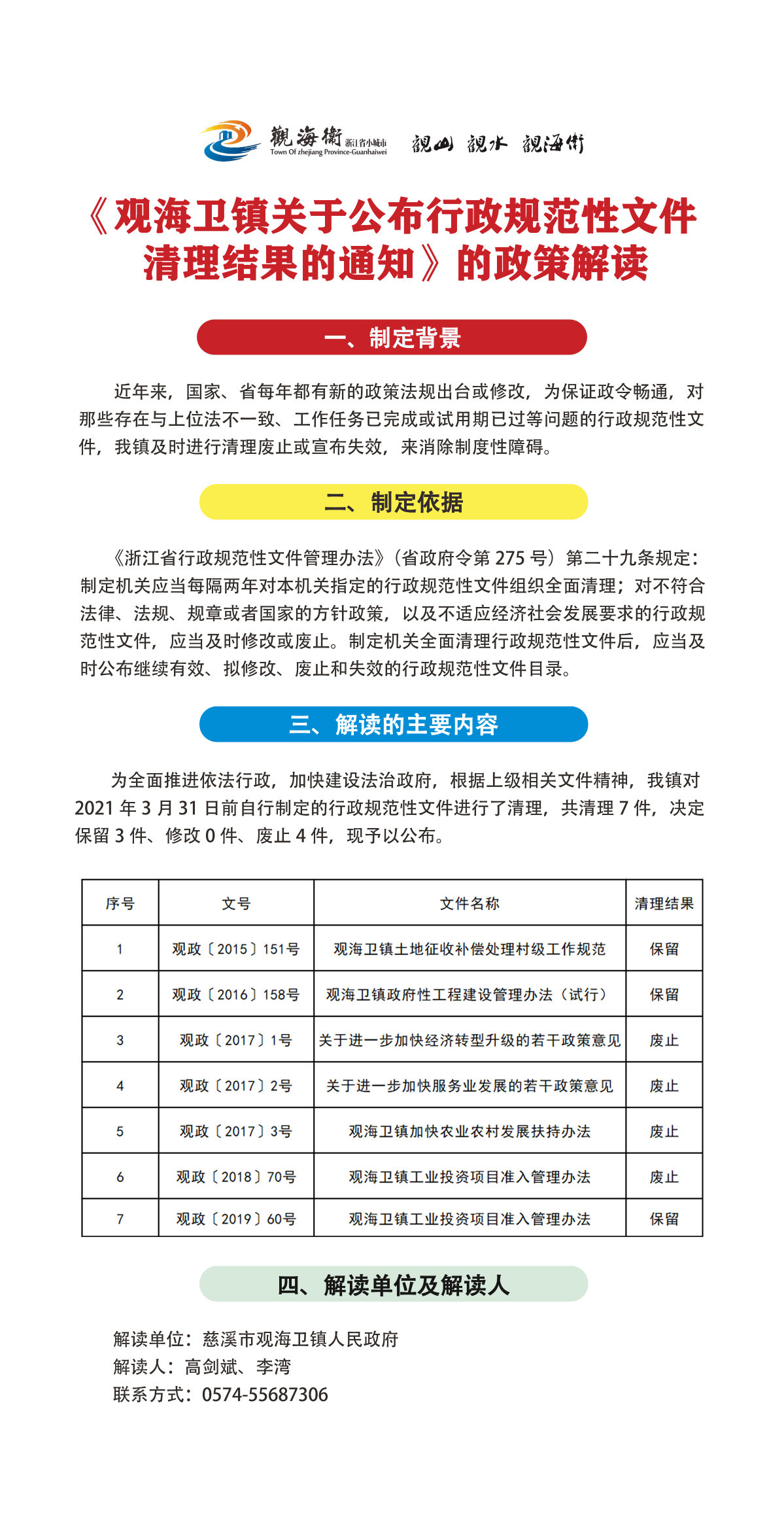 《觀海衛鎮人民政府關于公布行政規范性文件清理結果的通知》的政策解讀