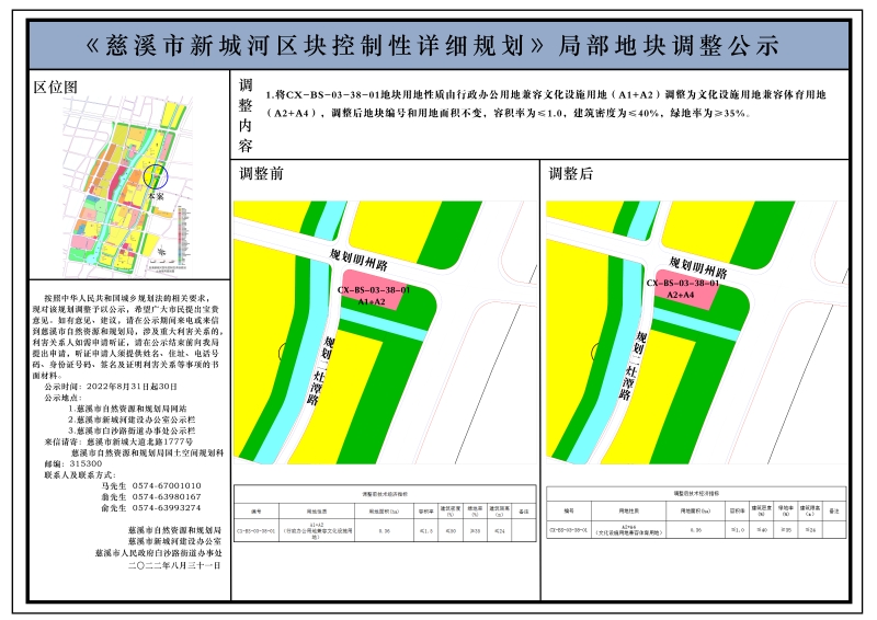 《慈溪市新城河區塊控制性詳細規劃》CX-BS-03-38-01地塊調整公示