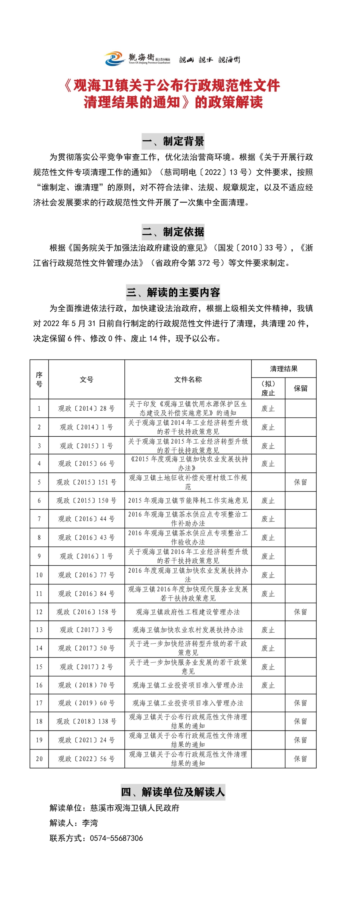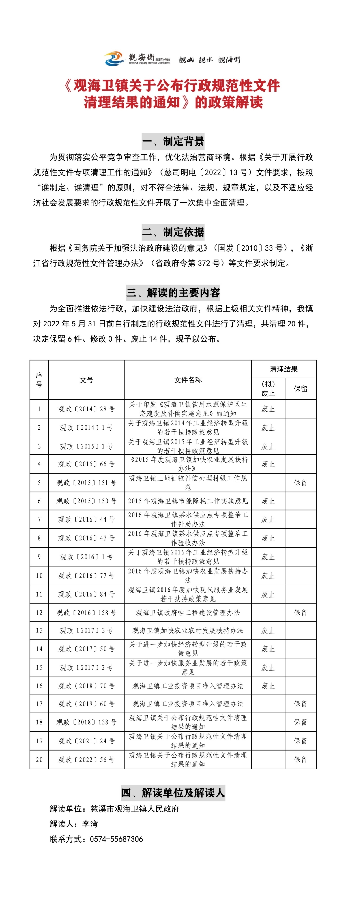 解讀:《觀海衛鎮人民政府關于公布行政規范性文件清理結果的通知》
