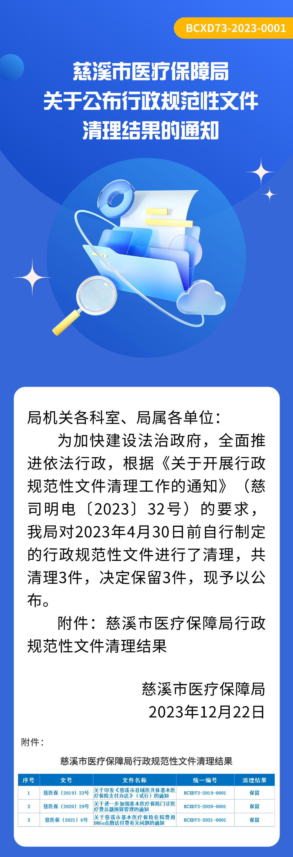 慈溪市醫療保障局關于公布行政規范性文件清理結果的通知