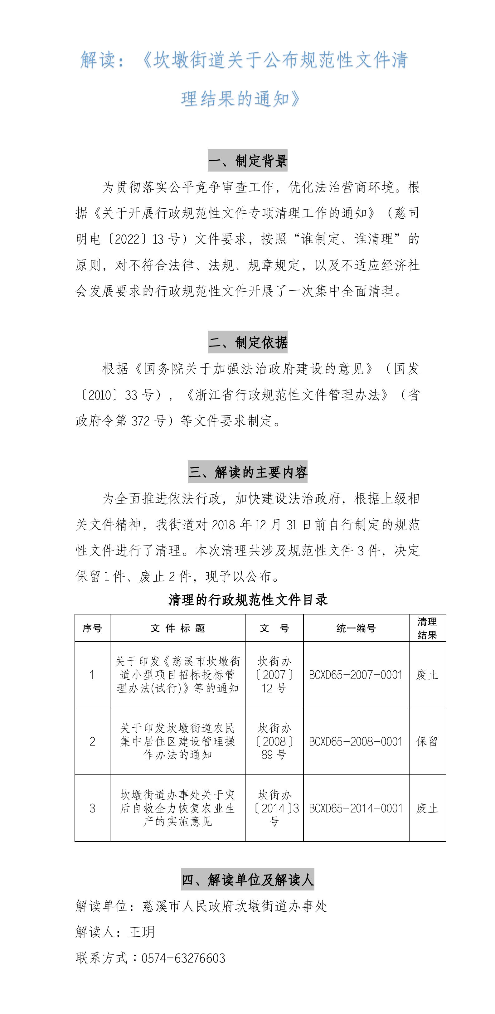 解讀:《坎墩街道關于公布規范性文件清理結果的通知》