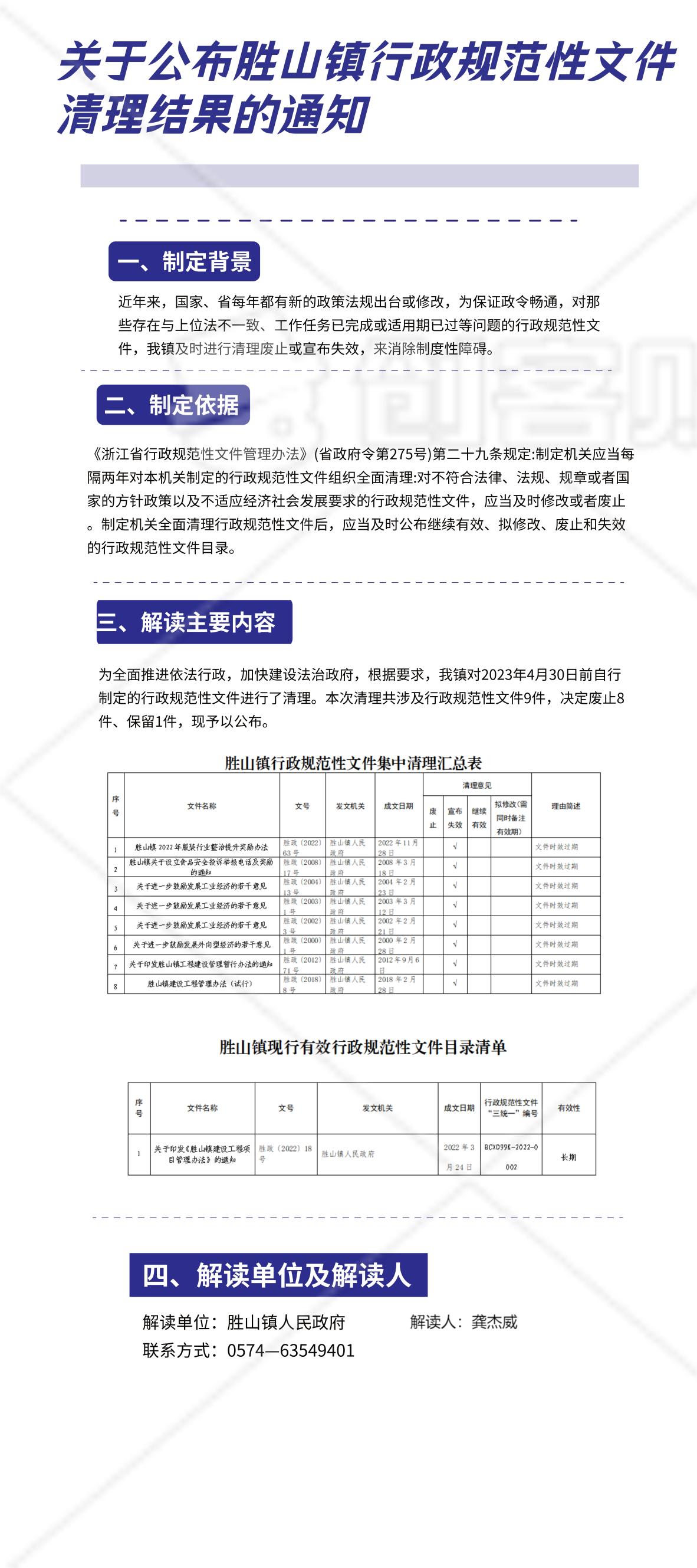圖解:《勝山鎮人民政府關于公布行政規范性文件清理結果的通知》