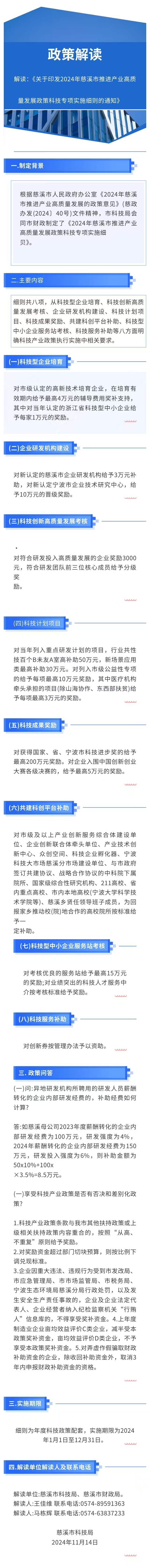 圖解:《關于印發2024年慈溪市推進產業高質量發展政策科技專項實施細則的通知》