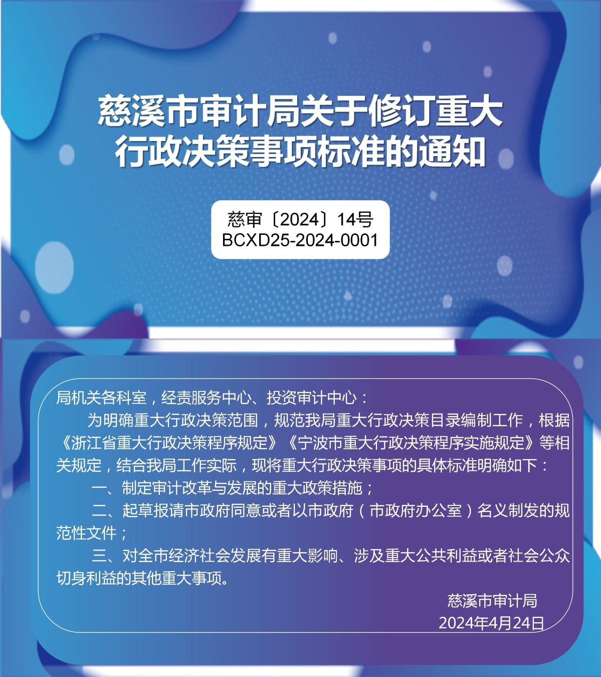 慈溪市審計局關于修訂重大行政決策事項標準的通知