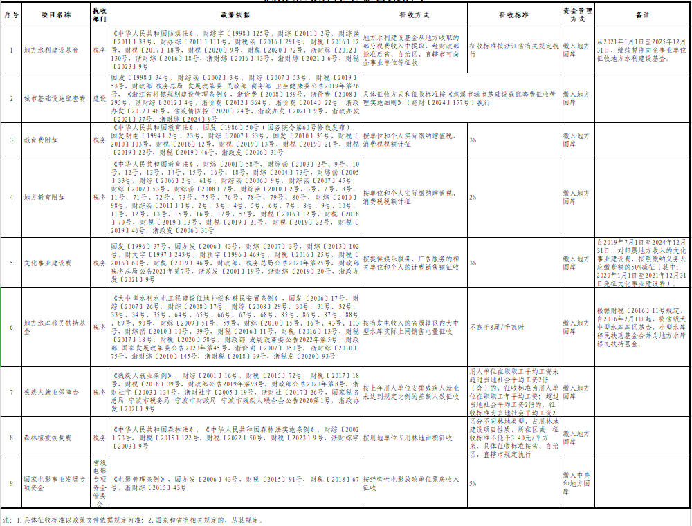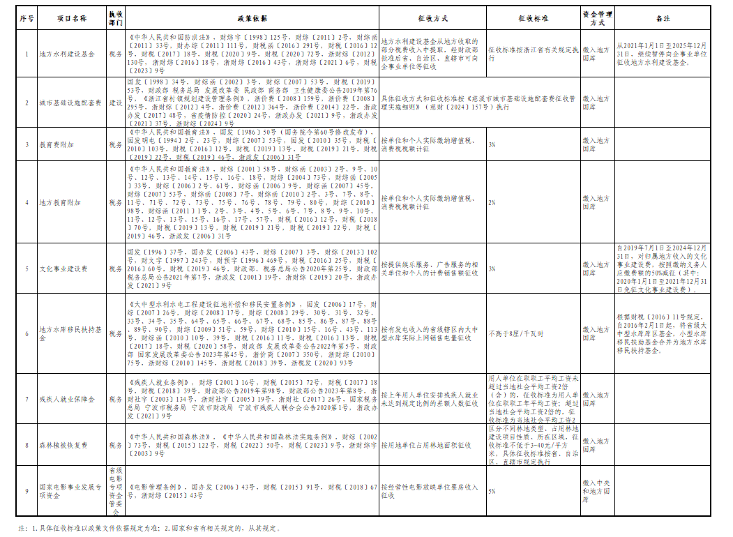慈溪市政府性基金目錄清單(2025年4月更新)